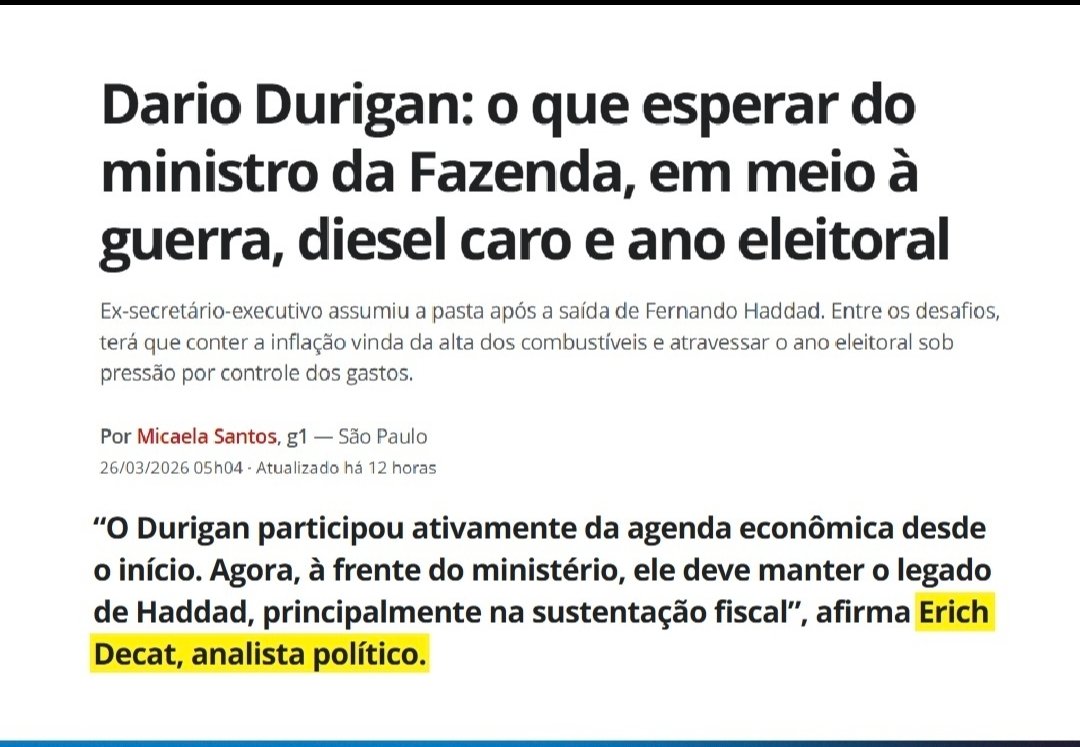 Nesta semana, o diretor de Relações Institucionais, Erich Decat, concedeu entrevista ao portal G1, analisando de forma crítica o legado e as brechas fiscais deixadas pelo ministro Fernando Haddad à frente do Ministério da Fazenda.